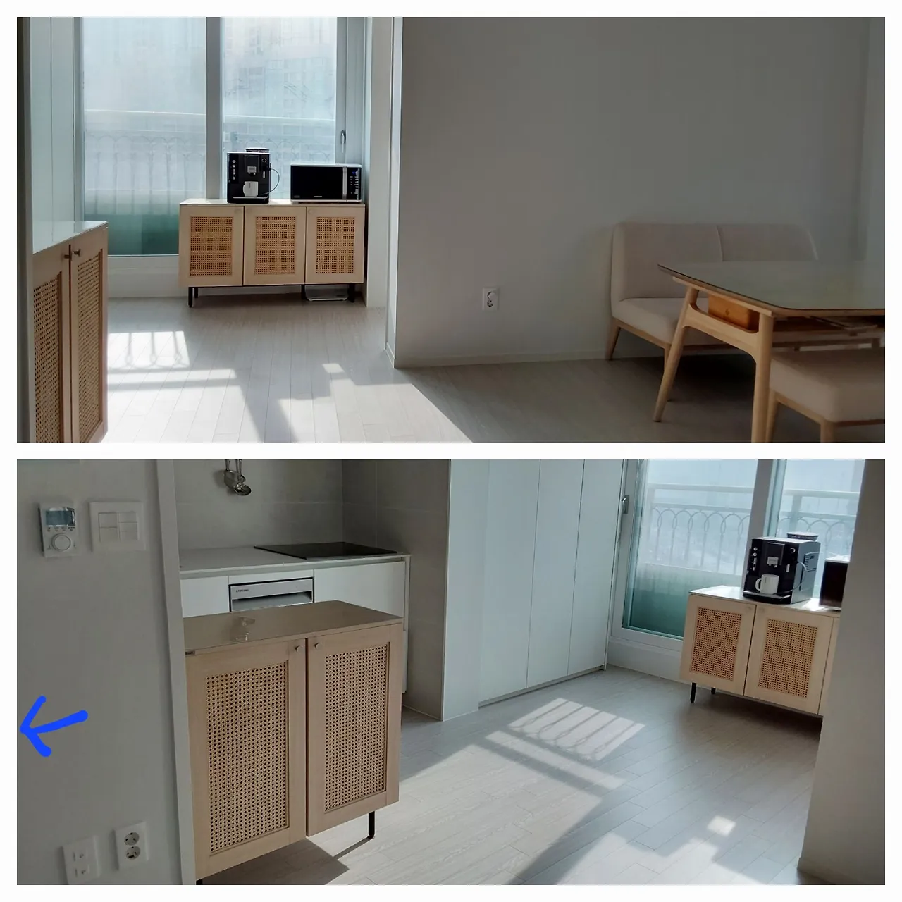 파란화살표 끝에 바로 욕실이다. 아. 가깝기도 하지.
