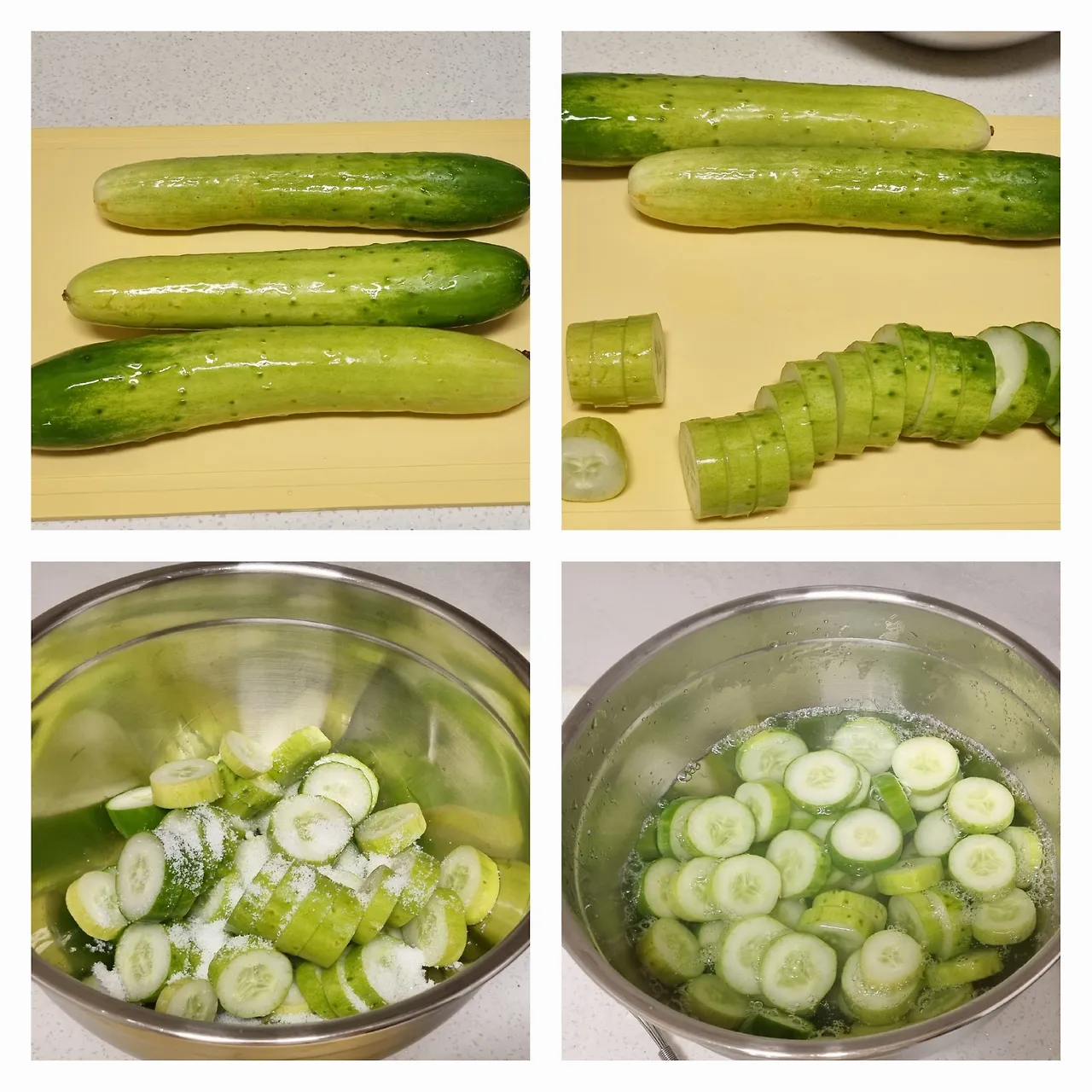 (오이에서 물기가 조금이라도 나오는 게 싫거나 더 오래 두고 먹을 거라면 끓는 물에 오이를 데쳐야 한다)