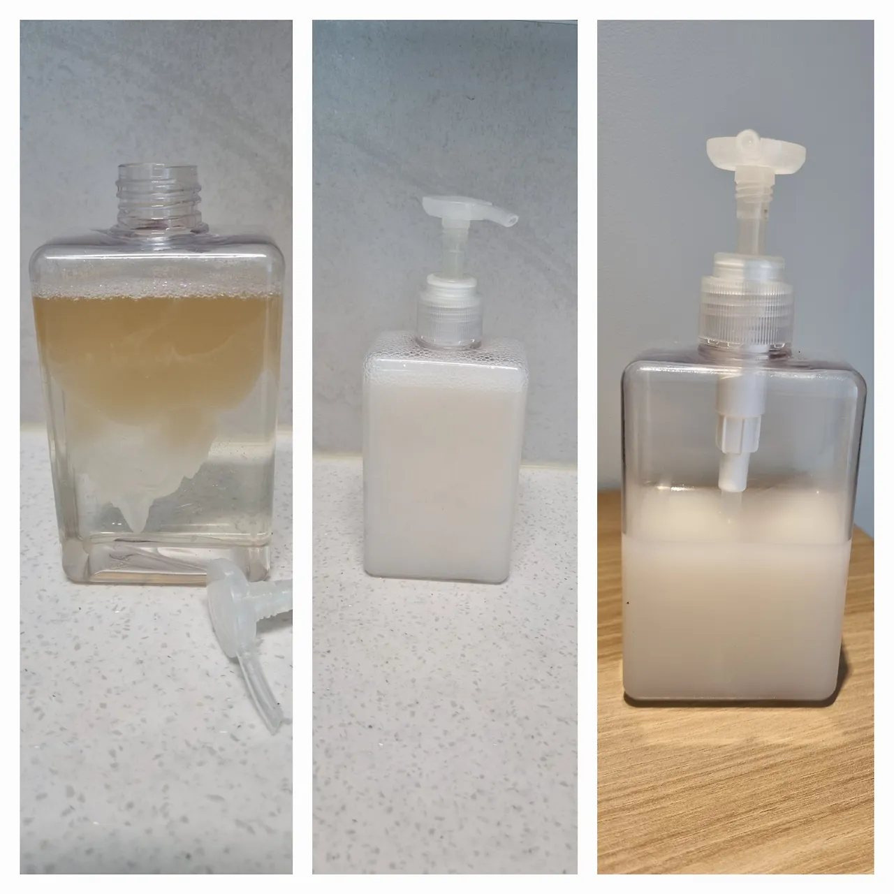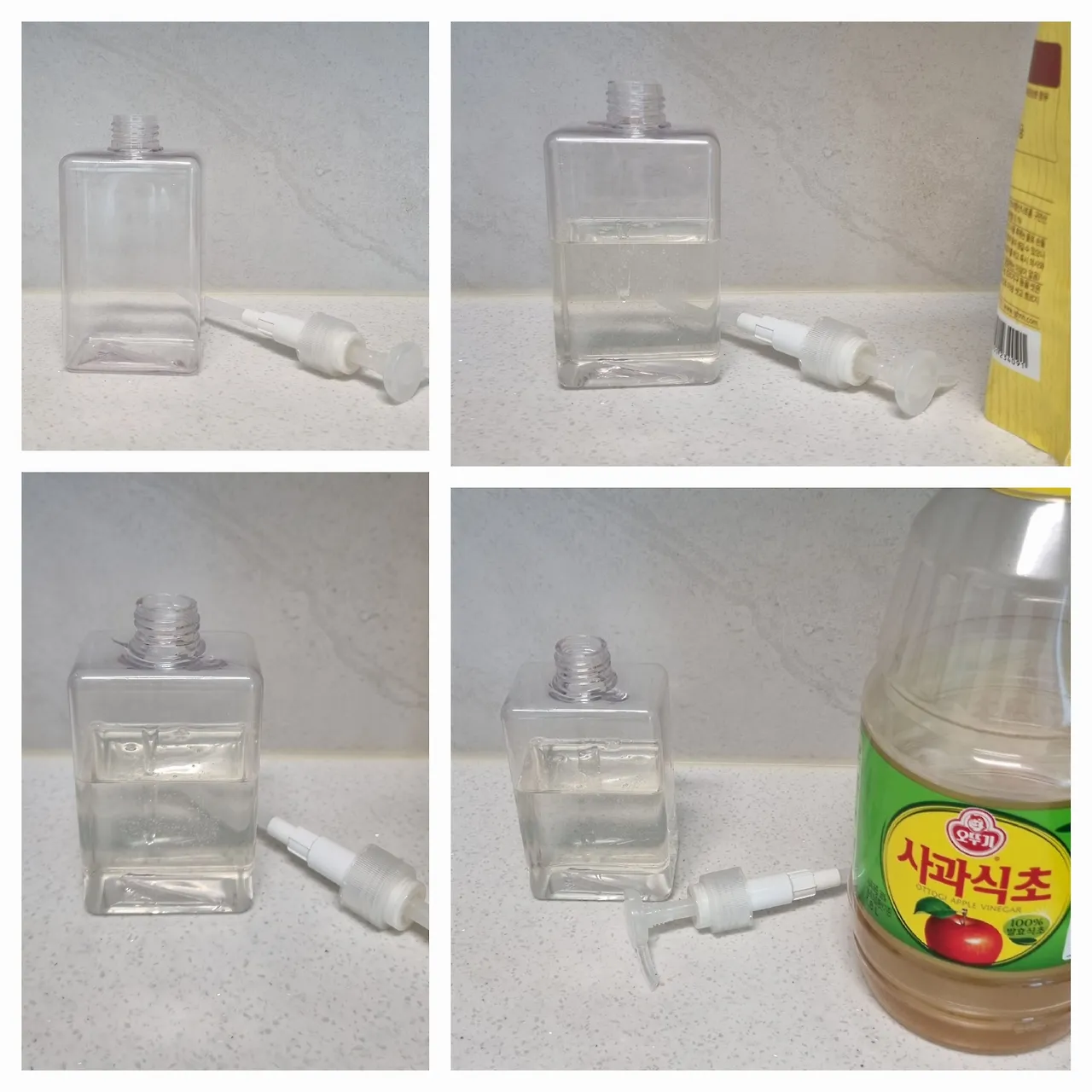 바짝 말린 용기에 주방 세제를 붓고 여기에 식초를 넣는다. 이게 끝이다.