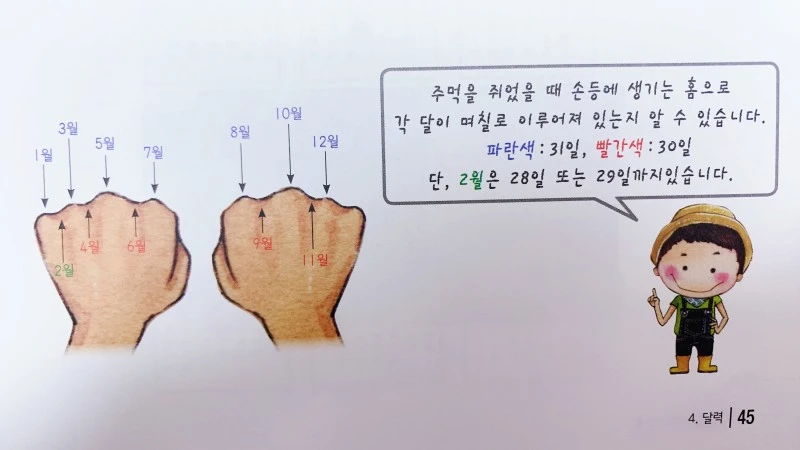 게다가 이제 내 아이는 손등의 홈이 없어도 30과 31이 있는 달을 척척 구분할 수 있으니, 매우 괜찮다.