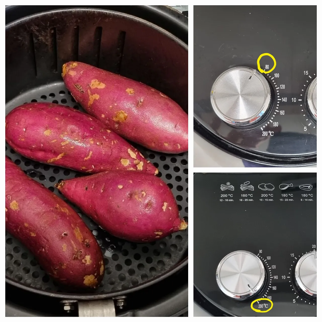 1. 고구마를 씻어 에어프라이어에 넣는다