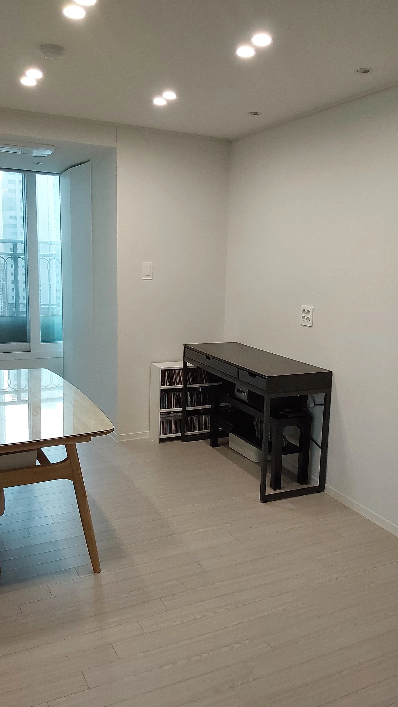 텔레비전을 치우면 엄청나게 넓고 훤해질 줄 알았던 벽면도 생각보다 큰 변화가 없다. 기기와 선들을 텔레비전 뒤로 잘 숨겨놓았던 덕에 텔레비전 자리 딱 하나만 비었을 뿐이다.