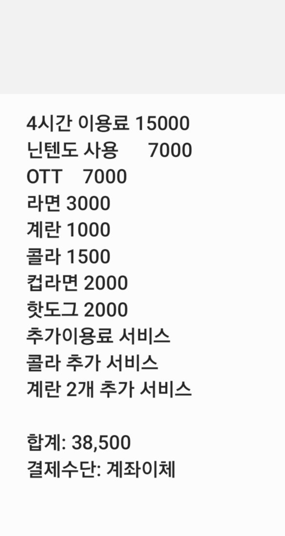 나름 저렴하게 책정했다 싶었던 음식들도 워낙 많이 시켜 먹었더니 4만 원에 육박한다. 4시간 이용권도 부족해 또 4시간을 끊겠다는 아이를 만류한다. 참으로 관대한 점주는 두 시간 가까이를 덤으로 주고 계란이 먹고 싶은데 비싸다는 손님에게 단백질이 필요하다며 막대한 서비스를 제공한다.