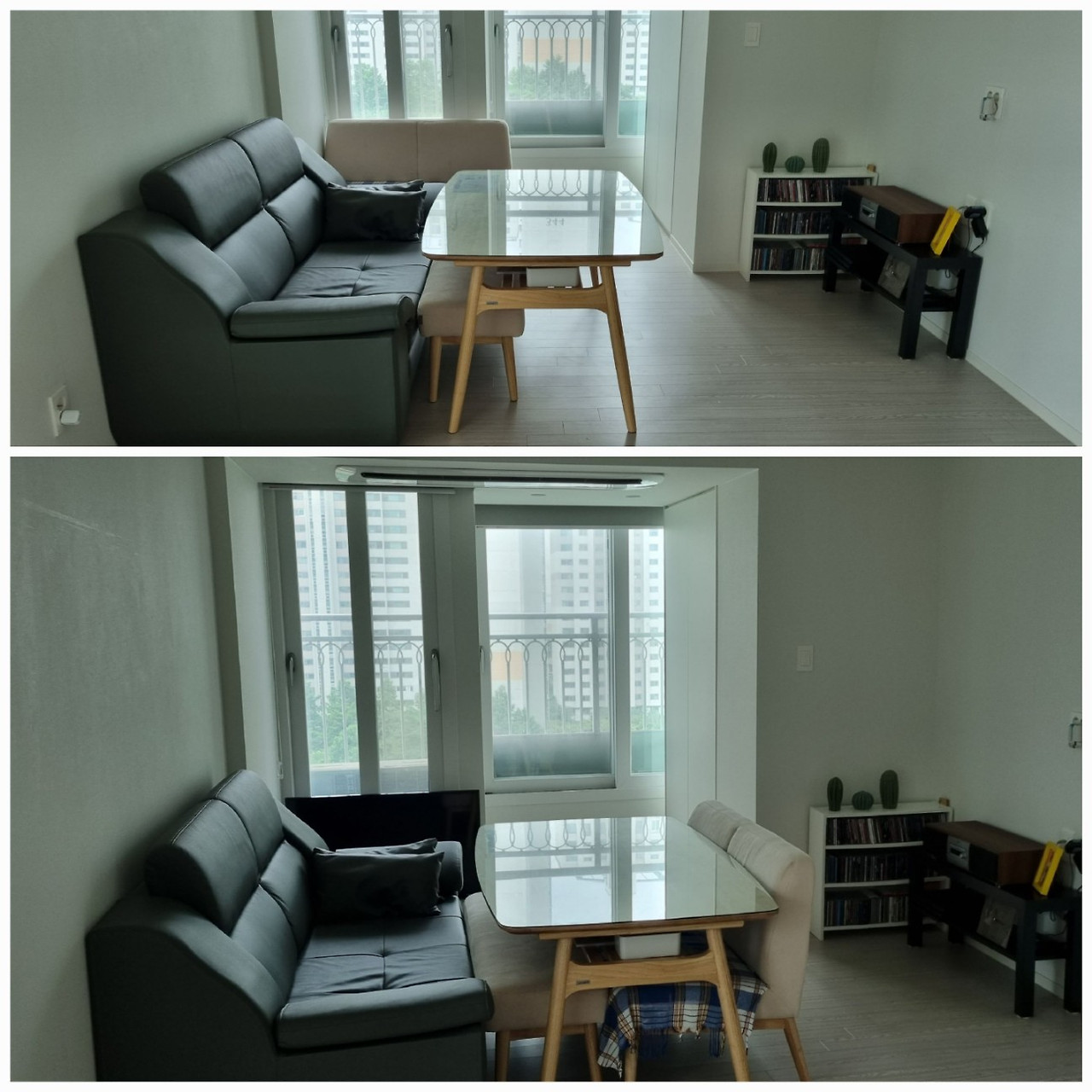 어떻게든 지금 가장 편하게 뒹굴 거릴 수 있는 자세를 찾아 자리를 옮겨 다니는 의자들을 만화방 모드로 세팅한다.
