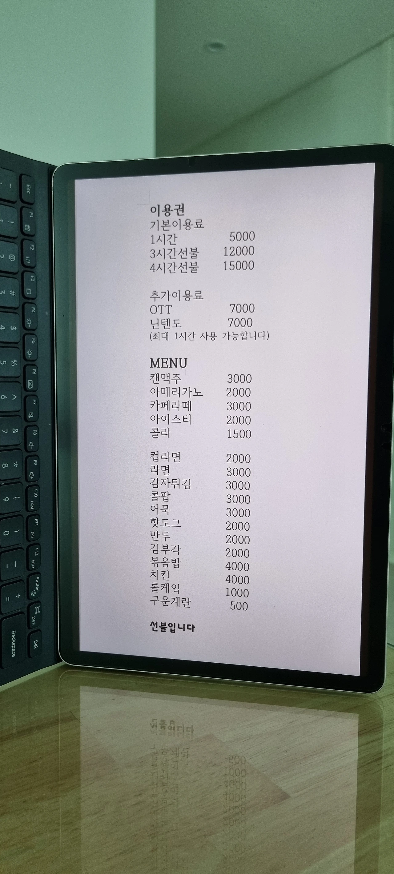 처음에 종이에 색연필로 메뉴를 쓰기 시작했으나 요구사항이 몹시 많다. 메뉴가 점점 늘어나며 A4용지를 벗어나고 결국 태블릿으로 작성을 한다. 아. 이래서 갈수록 전자 기기를 사용하는 거였다.