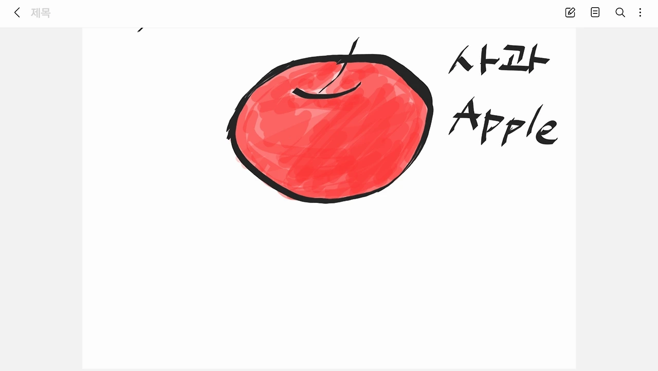 펜이 달려있으니 그림 그리는 앱이 기본으로 깔려 있다. 이제 그리기만 하면 되는데, 똥 손이다 보니 뭘 그릴지도 생각이 안 난다. 도착 첫날 아이가 빨리 그려보라 해서 사과를 하나 그렸다.