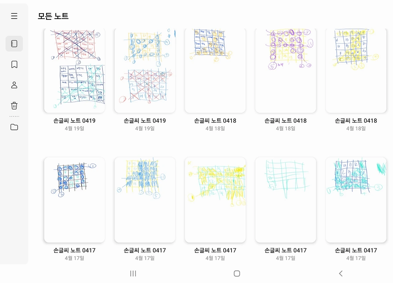 그러고 나서 아직도 한 번도 그림을 안 그리고 있다. 3월부터는 거의 브런치 전용으로 쓰는 이 태블릿을, 요새는 아이가 빙고판으로 사용 중이다. 종이에 해도 되는데 꼭 여기에 해야겠단다. 중간중간 색깔도 바꿔가며 열심히 하고 있다. 빙고 좀 하다 보면 글씨를 쓴 위에 동그라미를 열심히 치느라 주먹 쥔 아랫부분, 새끼손가락 옆면이 화려한 색으로 색칠이 되어있는데, 여기에 하니 손이 깨끗한 데다, 색깔 고르느라 집중하는 모습이 귀여워서 태블릿을 내주고 만다.