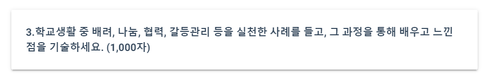 실제로 대학 원서의 적지 않은 부분을 차지하고 있는 자기소개서 3번 문항의 질문을 올려봅니다.