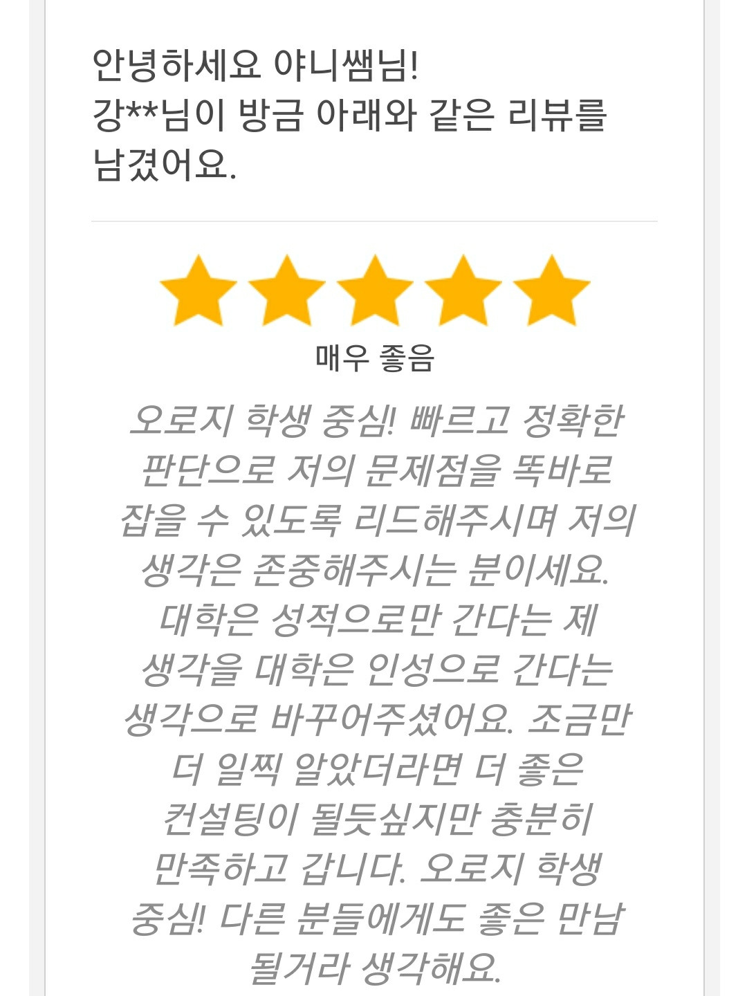 마지막까지 그 끝을 보이는 후기는 "선생님... 이 추천해주신 건 자율형 사립고등학교를 위한 전형 이라던데요"