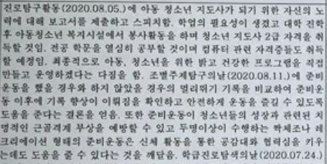 '복지 시설에서 봉사활동을 하며 청소년 지도사 2급 자격을 취득할 것임!"