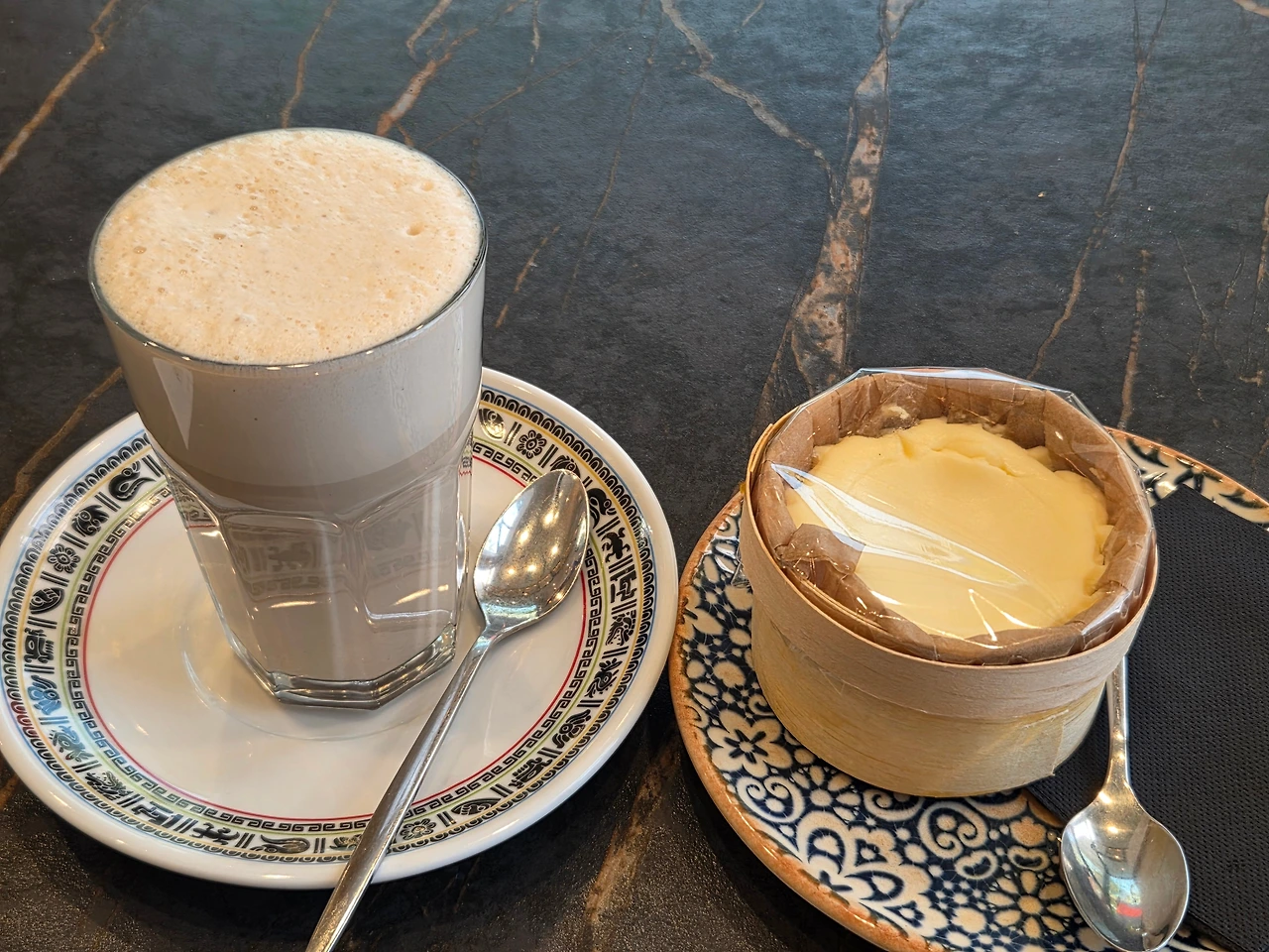 치즈의 풍미가 어찌나 진한지, 혀끝에 닿자마자 묵직하게 녹아내린다. 한국에서 먹던 치즈케이크가 '빵'에 가깝다면, 이곳의 케이크는 '치즈 그 자체'를 떠먹는 기분이다. 가격은 4.10유로. 이 퀄리티에 이 가격이라니, 스페인의 물가가 사랑스러워지는 순간이다.