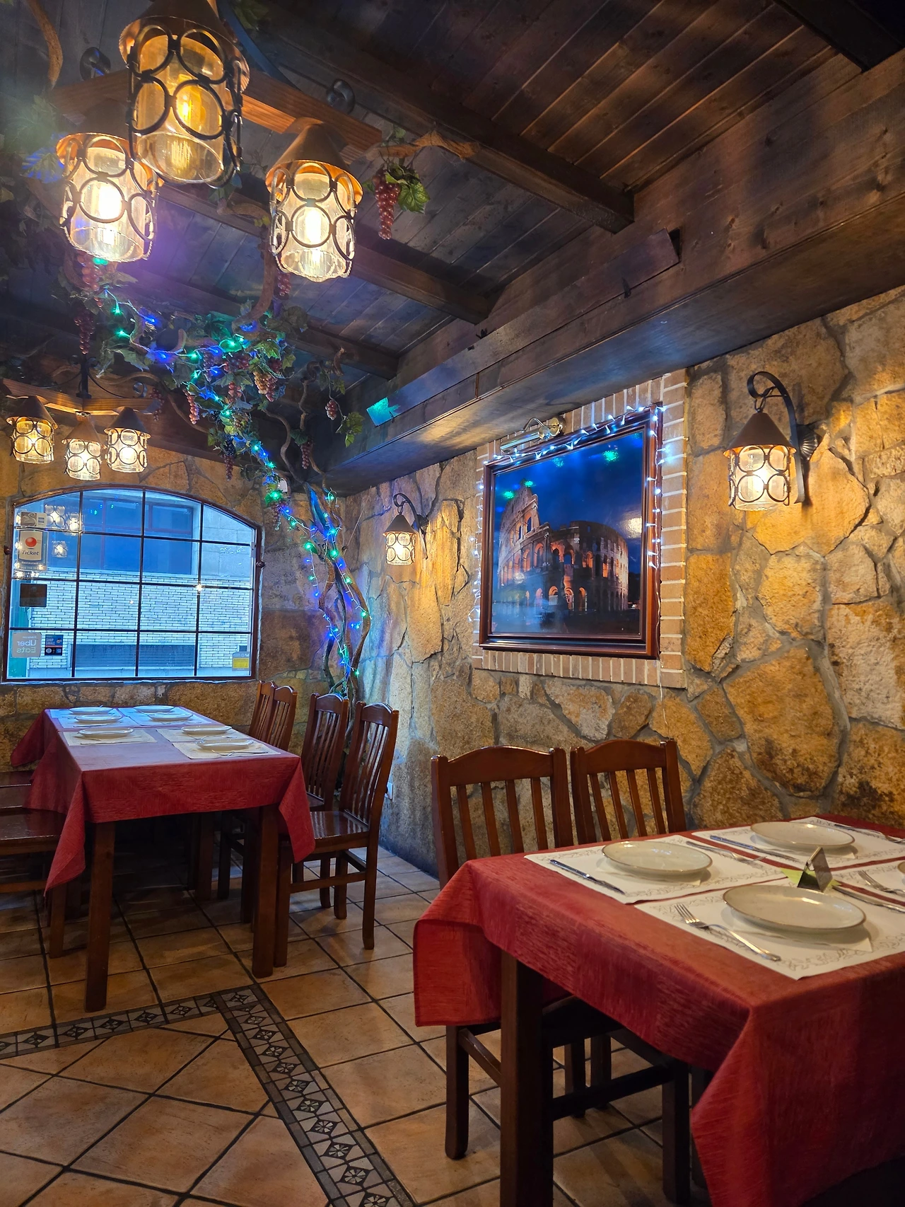 돌로 된 외벽과 아치형 입구가 매력적인 이곳은 들어가기 전부터 "아, 여기 찐 맛집이겠다" 싶은 포스가 느껴지는 곳이다. 내부는 아늑하고 따뜻한 조명 덕분에 편안하게 식사하기 딱 좋은 분위기다.
