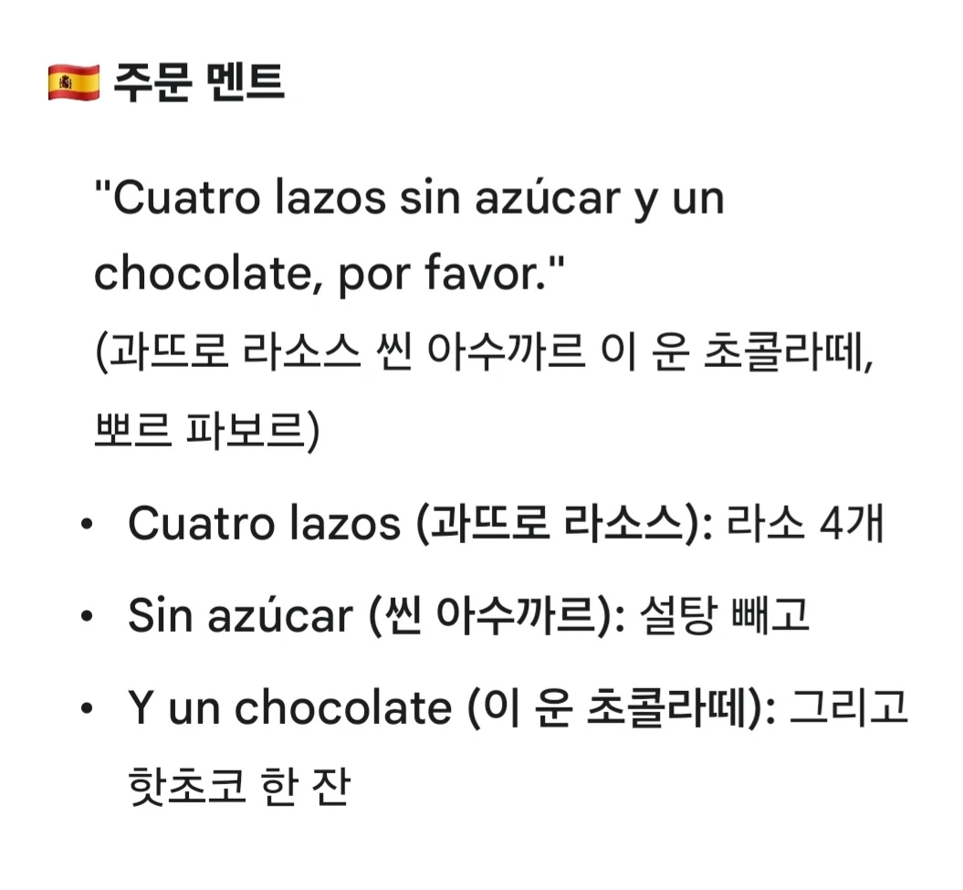 나는 너무 단 건 싫어서 "Sin azúcar(설탕 없이)"를 외치고, 진한 핫초코(Chocolate) 한 잔을 추가했다.