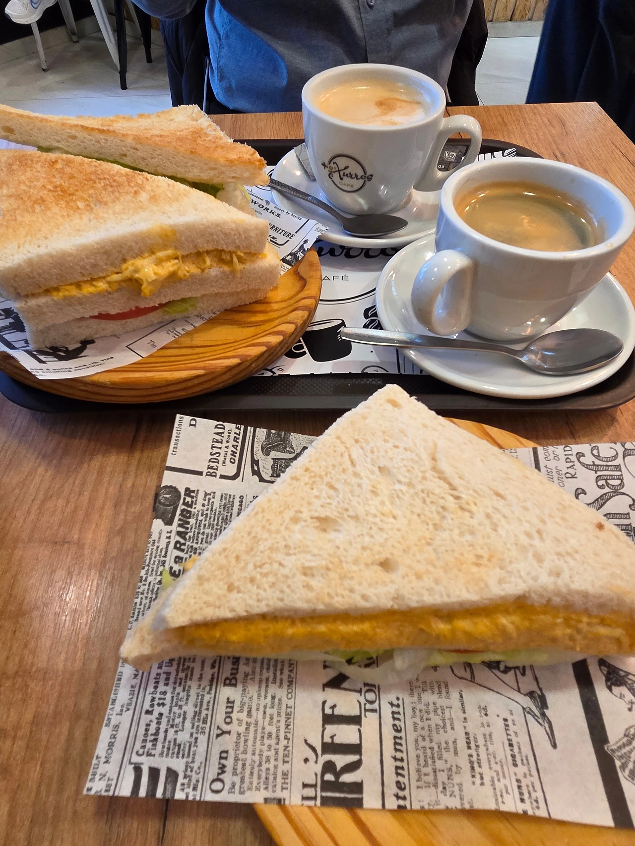 Entero (엔떼로 / 전체): 식빵 3단 샌드위치가 무려 두 덩어리(총 2쪽)나 나온다. 건장한 성인 남자가 배부르게 먹을 식사량이다. 소식하는 사람이 혼자서 브런치로 먹기엔 꽤 벅차다.