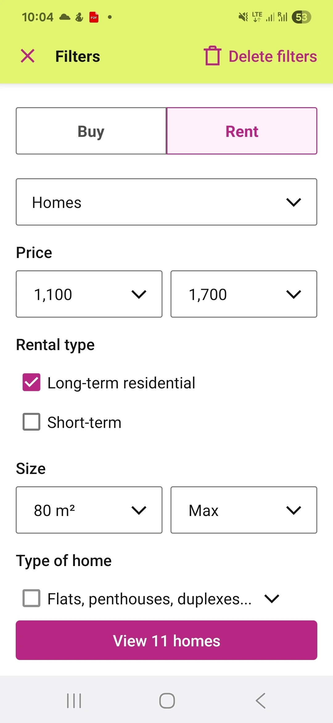 2)필터 활용: 예산(Price), 방 개수(Bedrooms), 주차여부 등을 체크합니다. 예산의 경우 예산의 최소금액과 최대금액을 설정해 둘 수 있어요~특히 중요한 점은 장기숙소에 체크해 두는 것이겠죠~