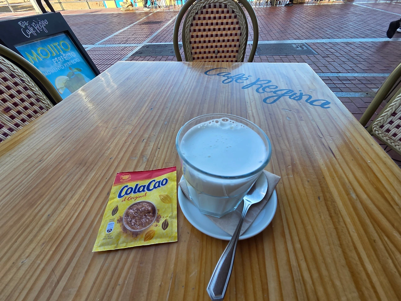이 주문을 외치면 웨이터는 따뜻한 우유 한 잔과 노란색 가루 봉지를 툭 던져준다. 한국의 '제티'나 '네스퀵'과 똑같은 이 녀석을 직접 우유에 타 먹어야 비로소 우리가 찾던 그 맛이 난다. 꾸덕한 죽이 싫다면 꼭 기억하자. 스페인에서 코코아의 정답은 '노란 봉지'의 콜라 까오다.