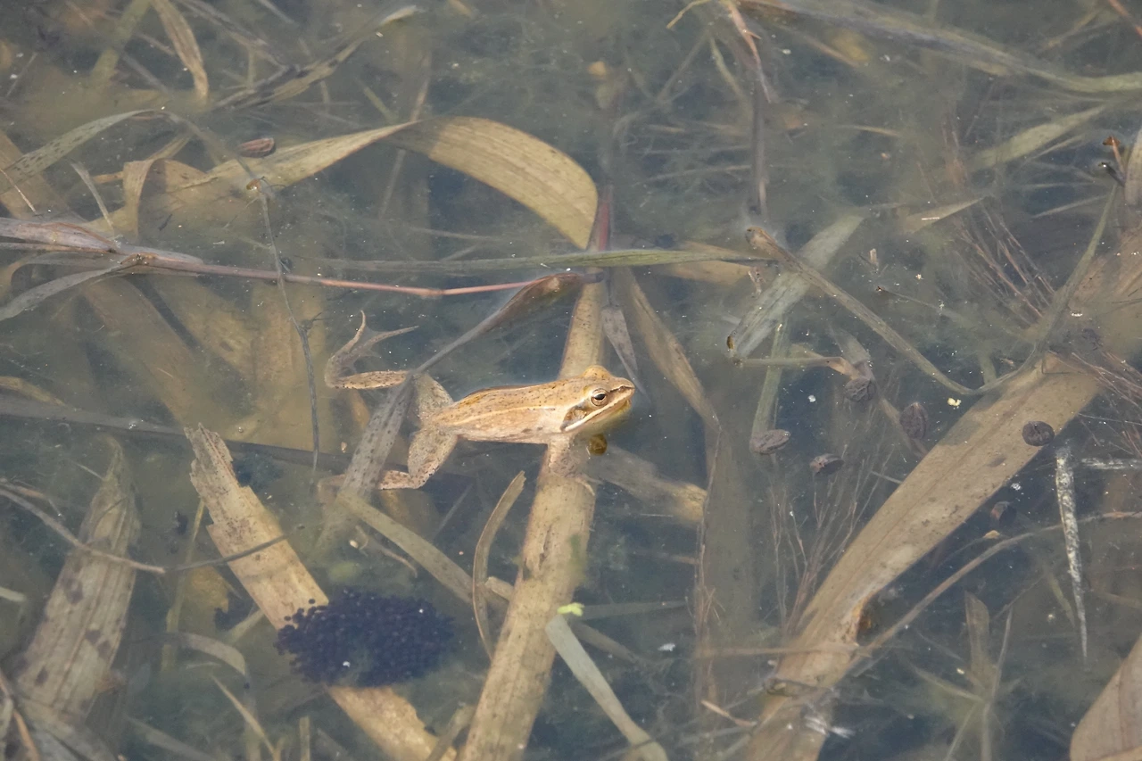 내가 자주 다니는 습지에는 ‘한국산개구리’가 산다. 입 가장자리에 흰 줄이 특징인 한국산개구리는 2월 말쯤 주먹만 한 알덩이를 낳는다. 크기가 작아 품을 수 있는 알도 적어 알덩이도 작다.