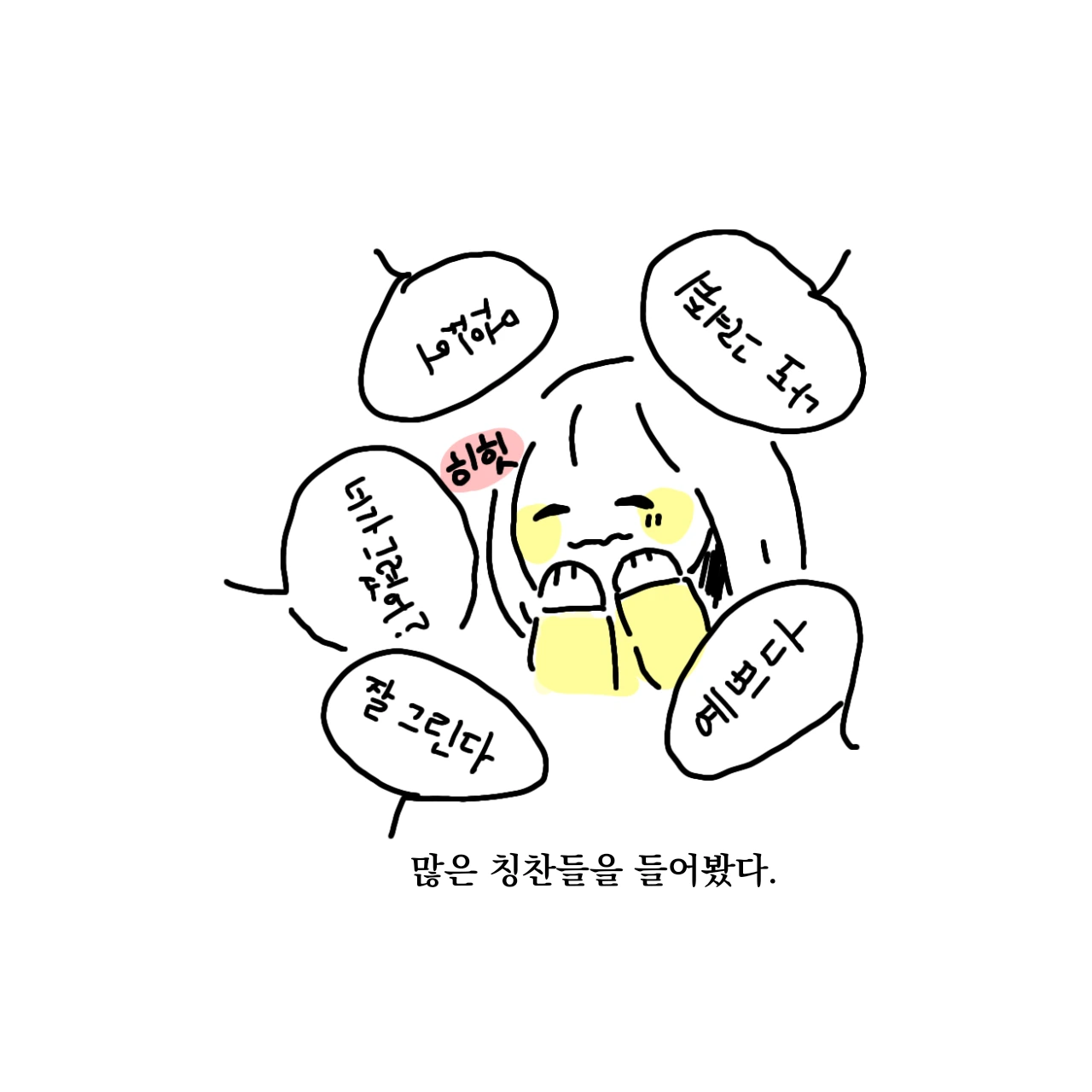 한정적이고 성인 되니, 어떤 대가 없이 그리기가 어려워졌다. 이렇게 많은 칭찬과 말들 중에 최근에 가장 좋았던 칭찬 하나가 있다.