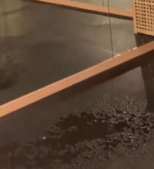 스튜디오에 있던 두 출입구 양 방향에서 비가 엄청난 속도로 흘러들어오고 있었다.