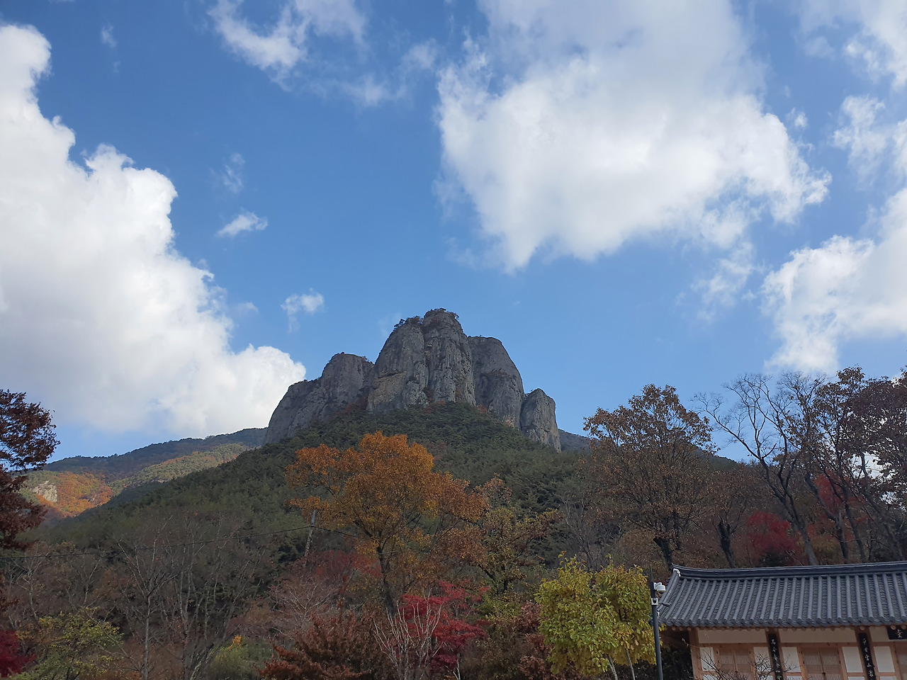 서둘러 7시에 출발했다. 이번 달 여행은 경북 청송을 거쳐 경주로 가기로 했다. 주왕산은 화산이 만든 산으로 수차례 폭발이 거듭되면서 겹겹이 쌓여 현재의 높은 절벽과 암봉을 이루게 된 것이라고 한다. 차를 타고 가장 눈에 띈 모습은 왕관 모양의 중앙에 위치한 바위산이었다.