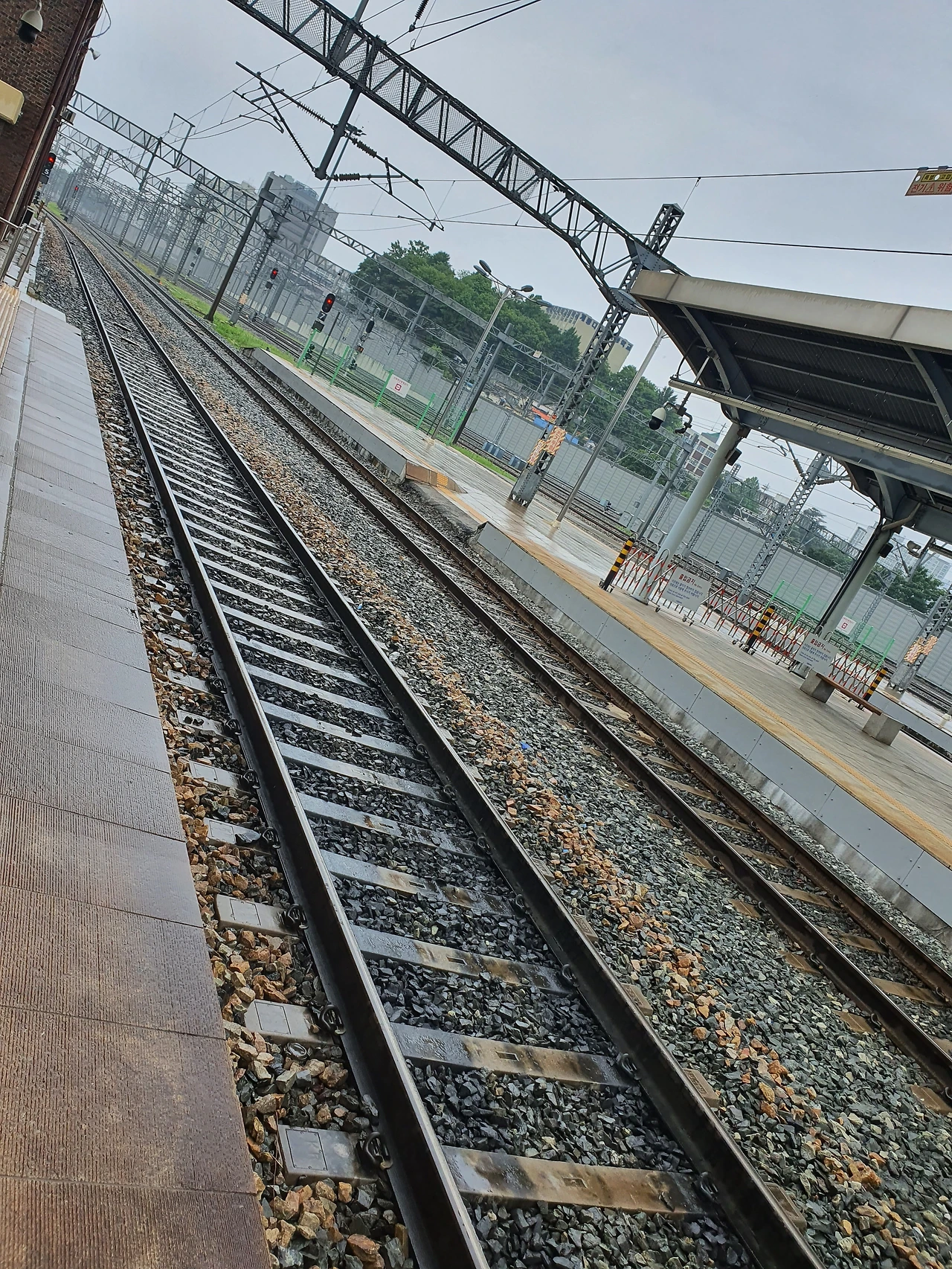 내가 걷는 길은 뽀송하니 건조한데 기찻길 돌맹이들은 깔끔, 말끔해서 하늘을 보니 예쁜비가 부끄럽게 내리고 있었다.