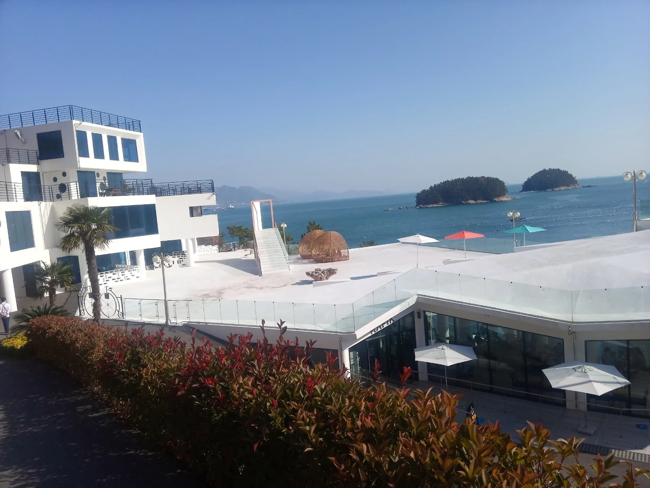 숙소는 바다와 접하고 있어 여행객들은 모든 방에서 바다를 볼 수 있다.