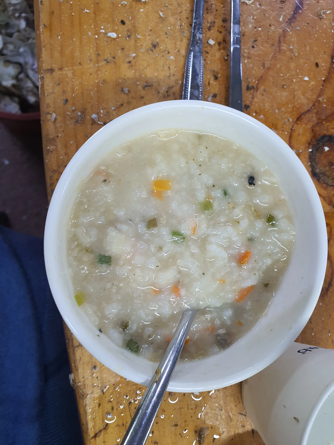 위는 굴죽인데, 배불러 조금만 먹으려 했지만 결국 한 그릇을 다 먹고 말았다.