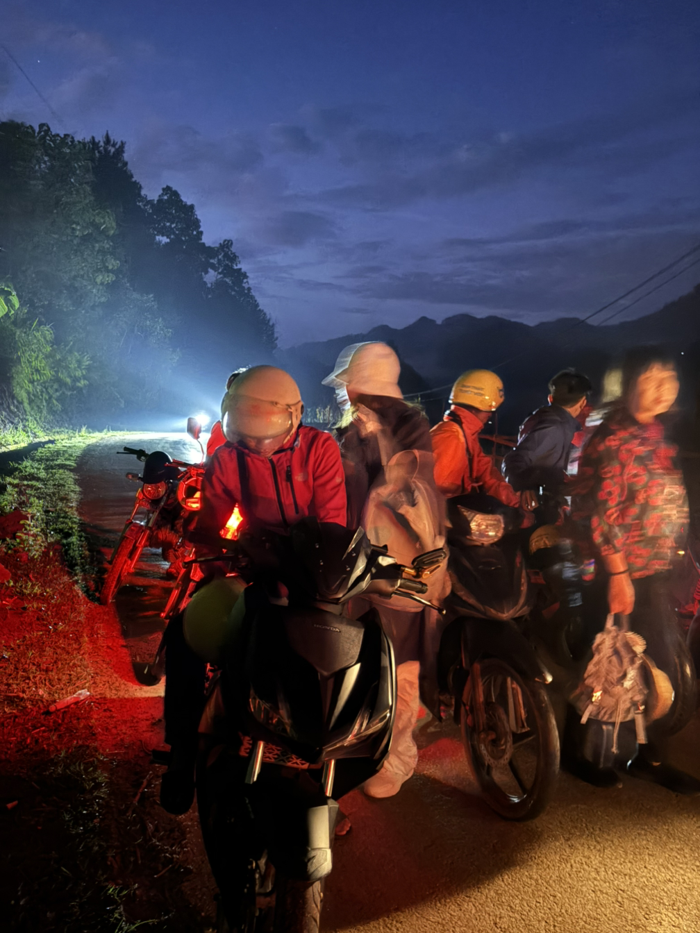 힌새벽 공기 속, 젊은 현지인 라이더들이 오토바이를 몰고 줄지어 서 있었다. 우리 다섯 명은 긴장과 설렘을 가지고 라이더 뒤에 올라탔다. 처음 타보는 오토바이는 위로위로 산길을 올랐다.