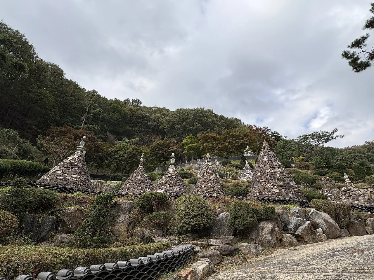 특징: 사찰 곳곳에 세워진 높은 돌탑들