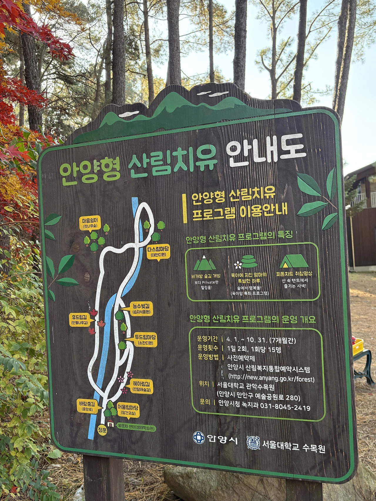 서울대 안양수목원 개방에 따라 숲 해설, 산림 치유, 목공 체험, 유아 숲 체험 등 시민 대상 산림 체험 프로그램이 확대 운영된다.