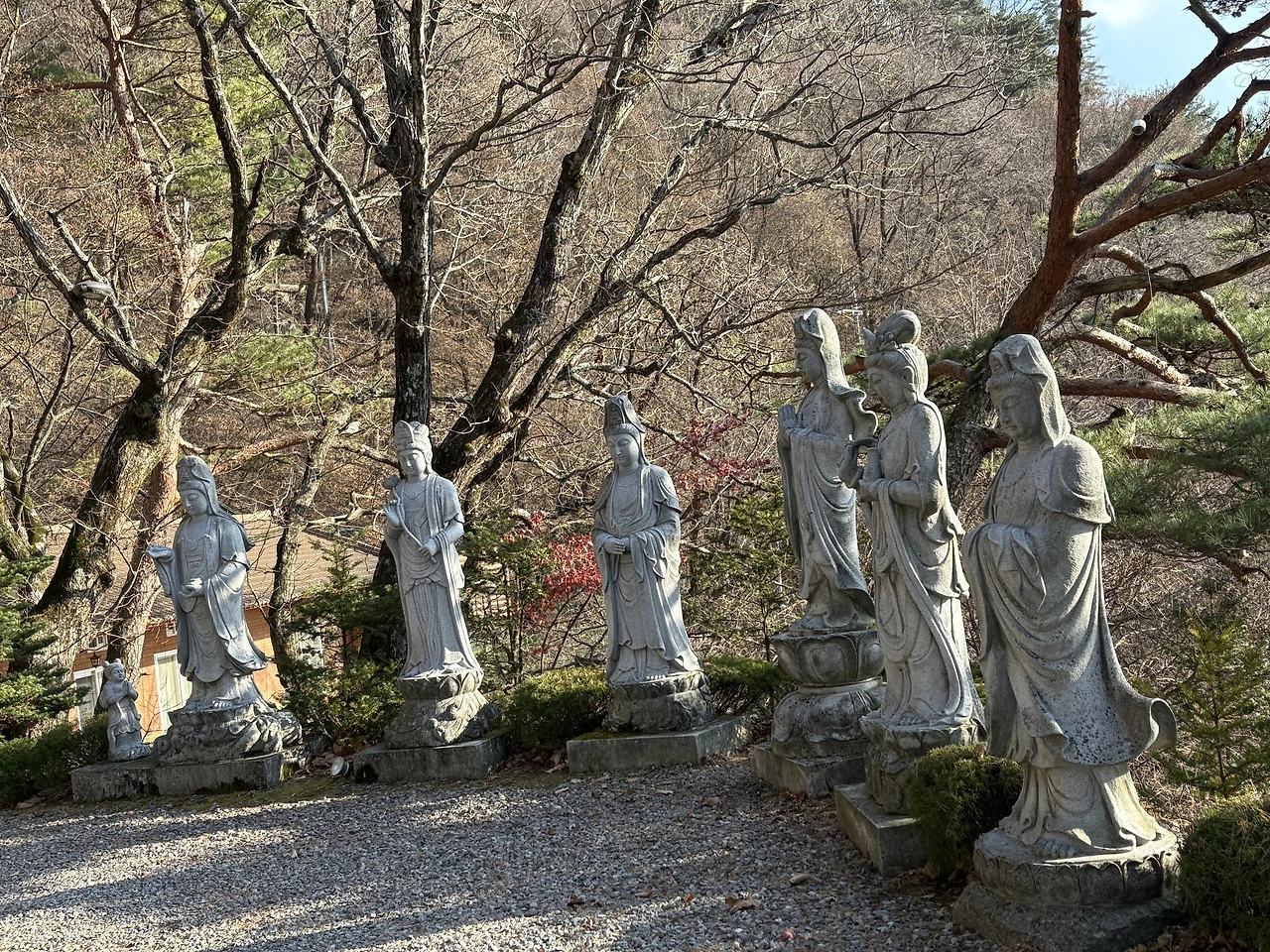 하산하는 길 '만경산사' 안내판 앞에 차를 멈추더니 다녀오라고 했다. 세 여인이 큰 기대 없이 갔다. '절이 거기서 거기지' 싶었지만, 우리의 생각이 틀렸다. 모두 '와~예쁘다'를 동시에 내뱉었다. 경치 좋고, 고즈넉하고, 작은 공간을 아기자기하게 꾸며 놓았다. 동서와 나는 연신 사진을 찍었고, 불자인 동서 친구는 부처님 앞에서 한동안 절하며 기도했다.