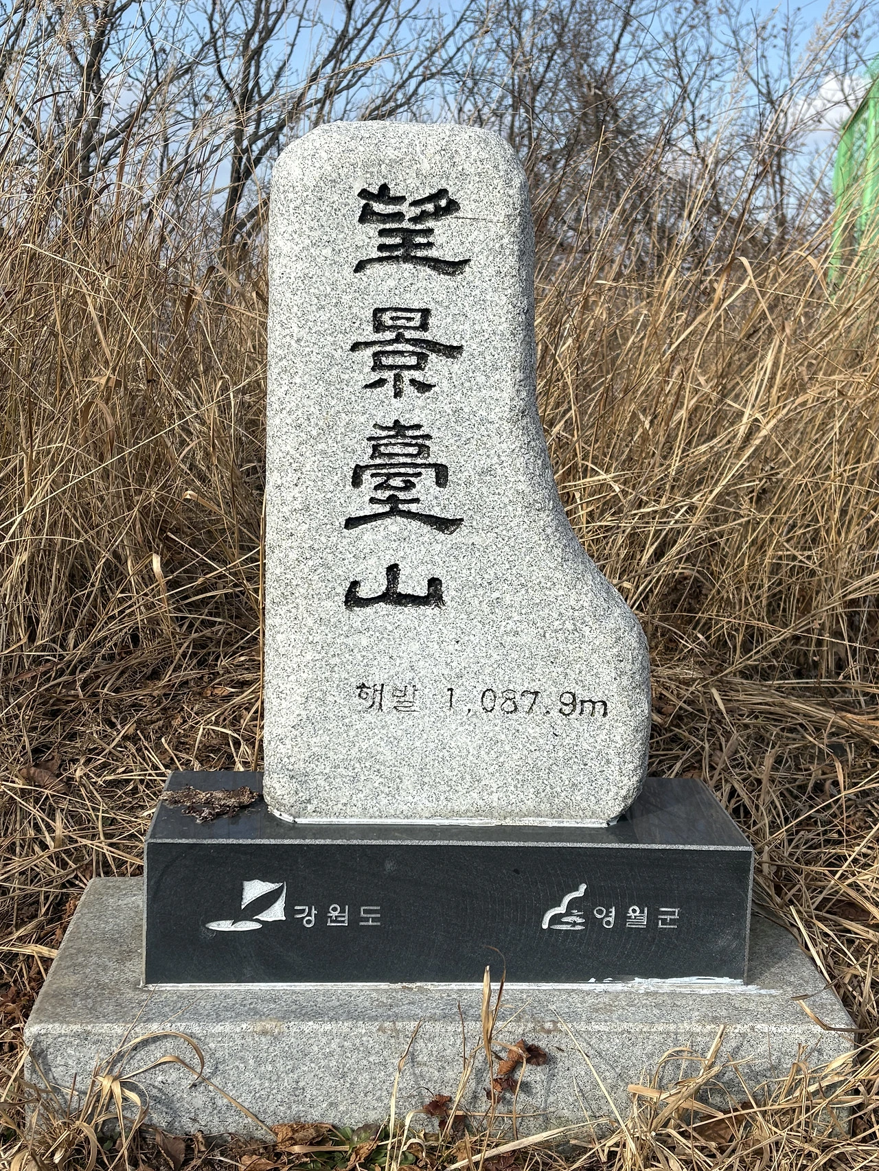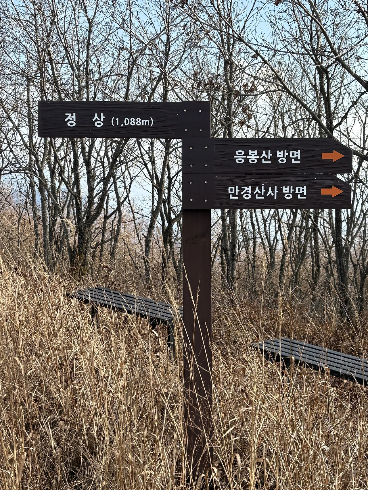 한참을 올라 임도 끝자락에 자리를 잡고 서부시장에서 사 온 부꾸미와 부침을 먹고 만경대산 정상석에서 인증사진을 남겼다.