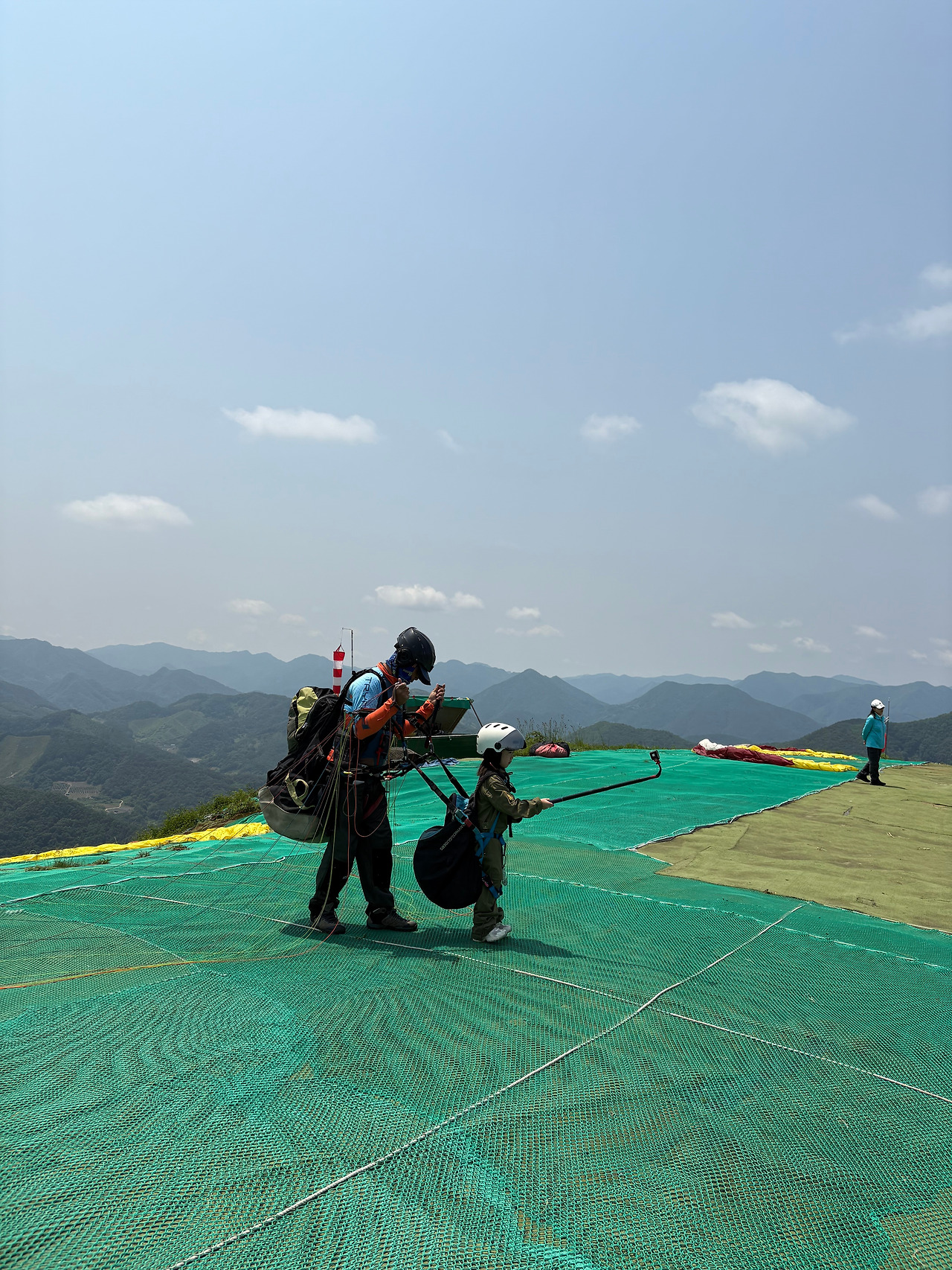 "오늘까지가 '소백산 철쭉제' 기간이라 어딜 가나 차가 붐비기는 할 테지만 일단 나가보시죠." 하며 나를 자신들의 차에 태워 출발했다. 단양역을 지나 꼬불꼬불 산길을 올라 양방산 산 정상으로 향했다. 탁 트인 조망은 작은 단양시내를 한 폭의 그림처럼 보여주었고, 넓게 펼쳐진 정상 평지에서는 7살 꼬마를 포함 외국인까지 패러글라이딩을 하기 위해 제법 많은 사람들로 분주했다.