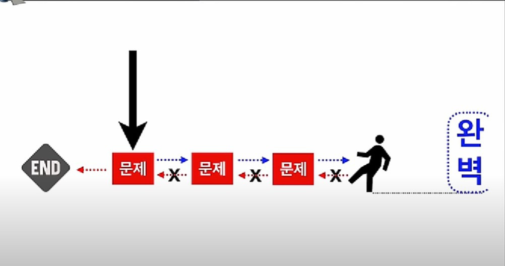 실패의 원인을 하나씩 지워나가는 방식입니다.