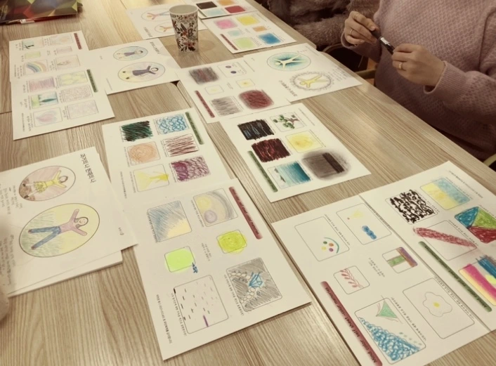 어떻게 칠하고 표현해야 할지 난감함을 표현하는 일이 적지 않다. 그것은 색으로 자신의 감정이나 정서를 표현하는 일들이 익숙하지 않고 우리의 마음을 들여다볼 기회가 많지 않은 의미이기도 한 듯하다. 그러나 놀랍게도 시간이 지나며 작업에 집중하게 되고 자신도 몰랐던 기억을 색을 통해 표현해내기 시작한다.