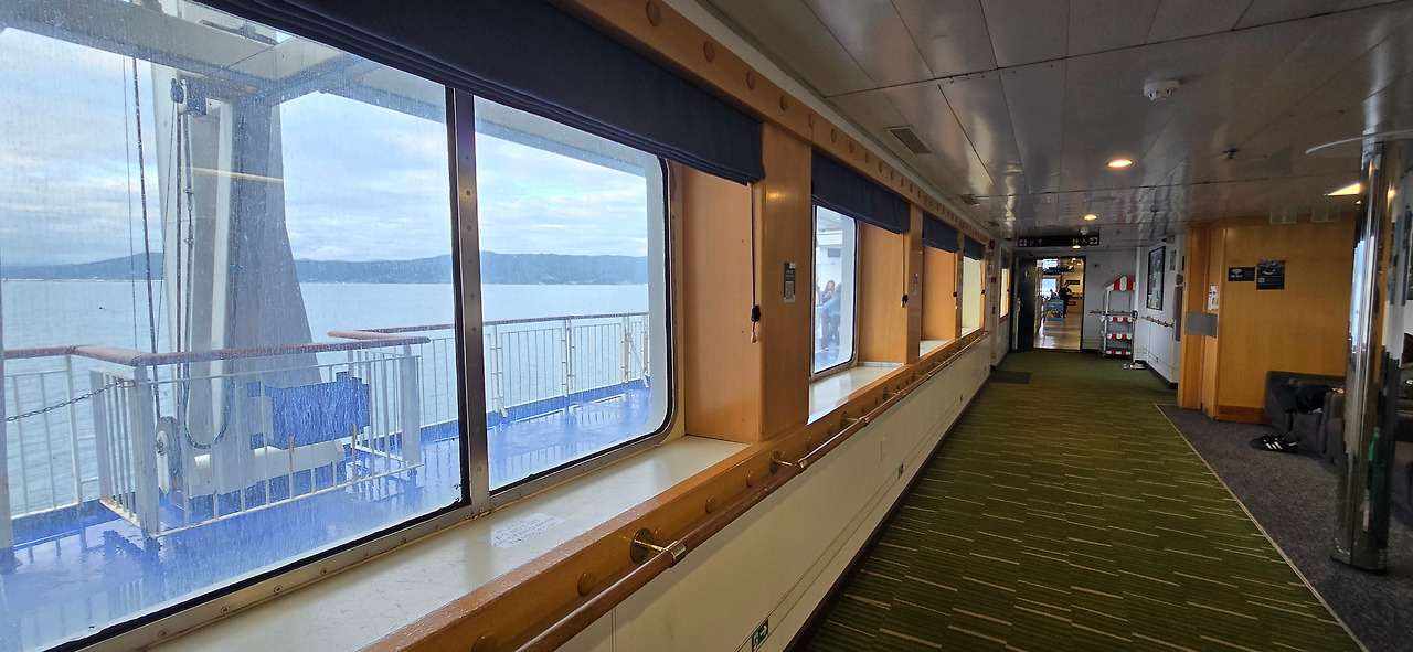 웰링턴 선착장(페리사마다 선착장이 다르니 반드시 예약한 회사 선착장으로 가야 한다)에서의 체크인 과정은 간단하다. 탑승 인원 확인, 예약한 차량이 맞는지, 반려동물 탑승은 안 했는지 등등을 직원이 확인하고 나면 차량 대기 줄(land)을 알려준다. 지정된 줄로 가서 잠시 대기했다가 탑승시각에 맞춰 배에 오르고, 차량을 선박 내 주차장에 주차한 뒤 3층 여객 공간으로 올라가면 된다.