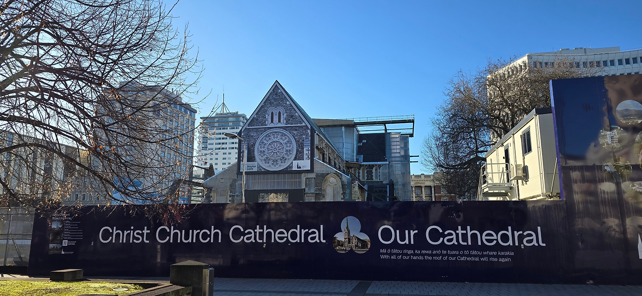 시티 중심 새 건물 사이로 아직 복구가 완료되지 않은 크라이스트처치 대성당이 눈에 들어왔다. 20년 전 방문 때 대성당의 웅장함을 아직도 기억하는데, 지진이 끝난 지 14년이나 지났는데도 아직 복구가 완료되지 않고, 복구마저 중단된 상황이 안타까웠다.