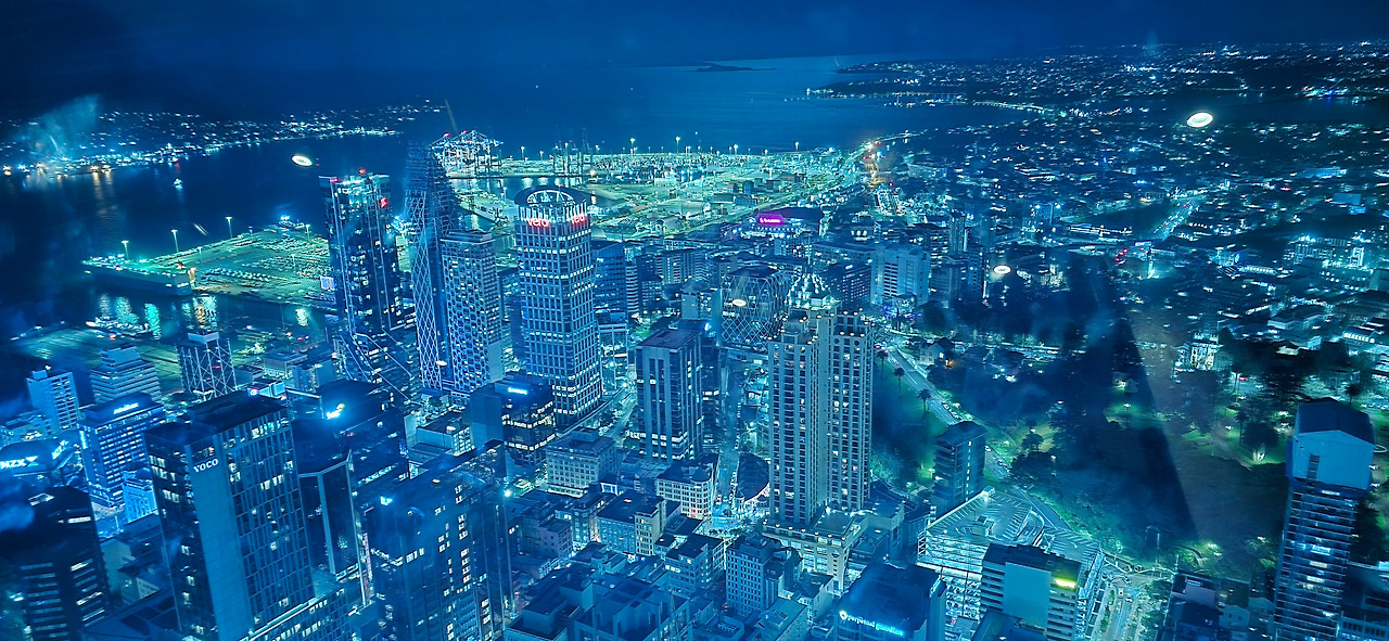 다시 최고층 전망대인 60층 스카이데크로 가는 엘리베이터를 탔다. 220m 높이의 60층 전망대는 51층 전망대보다는 아담한 사이즈이지만 더 높은 곳이라 그런지 경관도 새로워 보였다. 조명 덕에 잠시 푸른빛으로 변한 오클랜드 시내가 보였는데, 마치 미래도시에 온 느낌이었다.