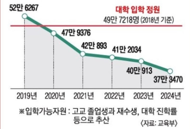 이미 우리나라의 대학 입학 정원은 남아돌고 있었다.
