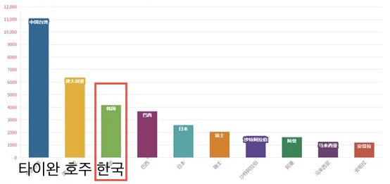 이제 다른 나라들 다 치우고 우리와 중국만 본다면 중국에게 우리의 위상은 만만치 않다.