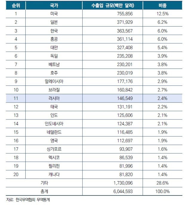 물론 우리와는 다르게 중국의 무역에 대한 경제 의존도는 절대적이지 않지만, 그래도 우리는 중국이 감히 무시 못 할 제3위 교역국이다.