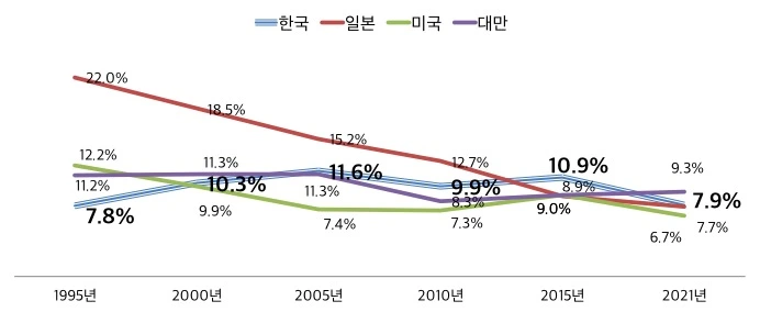 아까의 ‘중국 수입시장 내 주요국별 점유율 추이’의 그래프 중 홀로 후룸라이딩을 즐기시는 일본이 보일 것이다.