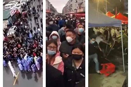 위문차 주민들을 방문한 ‘하늘 같은’ 상하이 당서기를 향해 시민이 삿대질하며 불만을 토로하고 경비와 공안들이 막고 있는 거주 단지 출입구를 운집한 주민들이 산사태와 같이 밀어낸다.