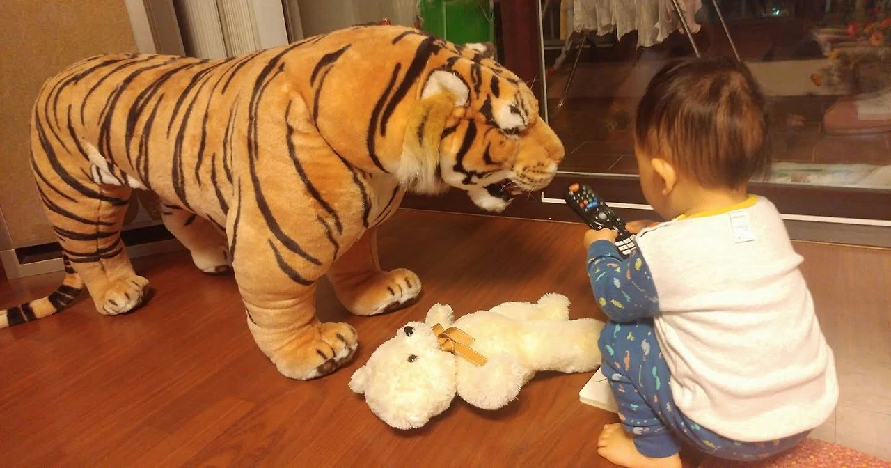 그저께 호랑이 인형을 가져왔다. 보자마자 도망치고 치우라고 손을 마구 저었다.ㅋ