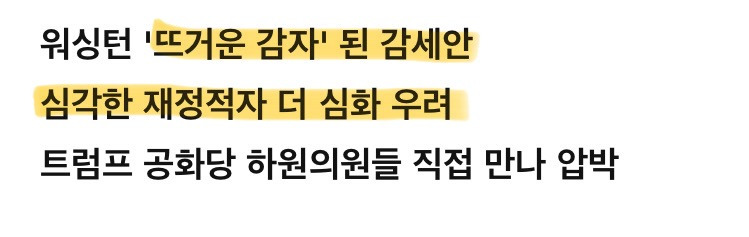트럼프는 감세안을 통과시키려 하나, 미지근한 당 내부 여론과 민주당의 견제로 쉽지 않은 상황.