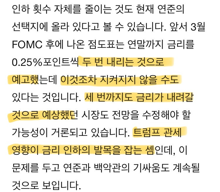 연준 위원들조차 관세 정책 여파와 인플레 흐름 파악 못함.