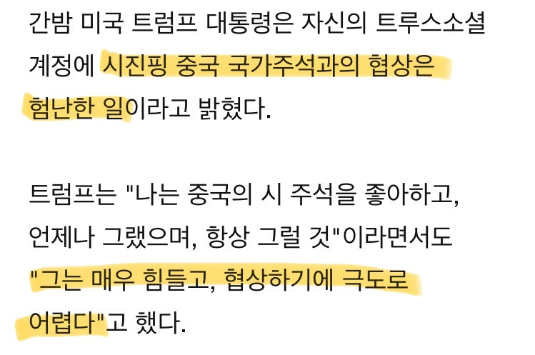 •트럼프는 “중국과 협상 어렵다”, 보호무역/관세/감세 등 재정·통화정책 혼선으로, 글로벌 무역 불확실성 확산.