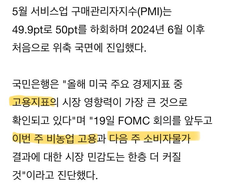 •美 경기 둔화 신호 명확: ADP 민간고용, 서비스 PMI, 기대치 미달, 고용지표가 연이어 발표되며 “침체 공포” 부각. 시장은 이미 연준의 금리 동결/인하 전망을 앞두고, 美 소비와 고용의 한계 상황을 강하게 인식하는 중.