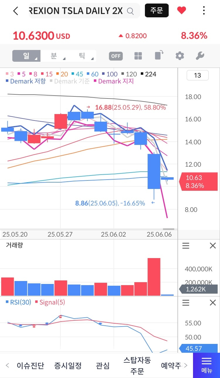 •차트/RSI: 일봉상 강력한 투매+바닥권 진입, RSI(30) 45.57, Signal(5) 아래