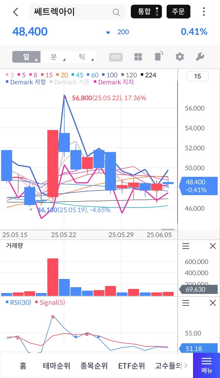 •다만 차트상 RSI(30)이 51.18로, 과매도(30~45) 신호는 미충족